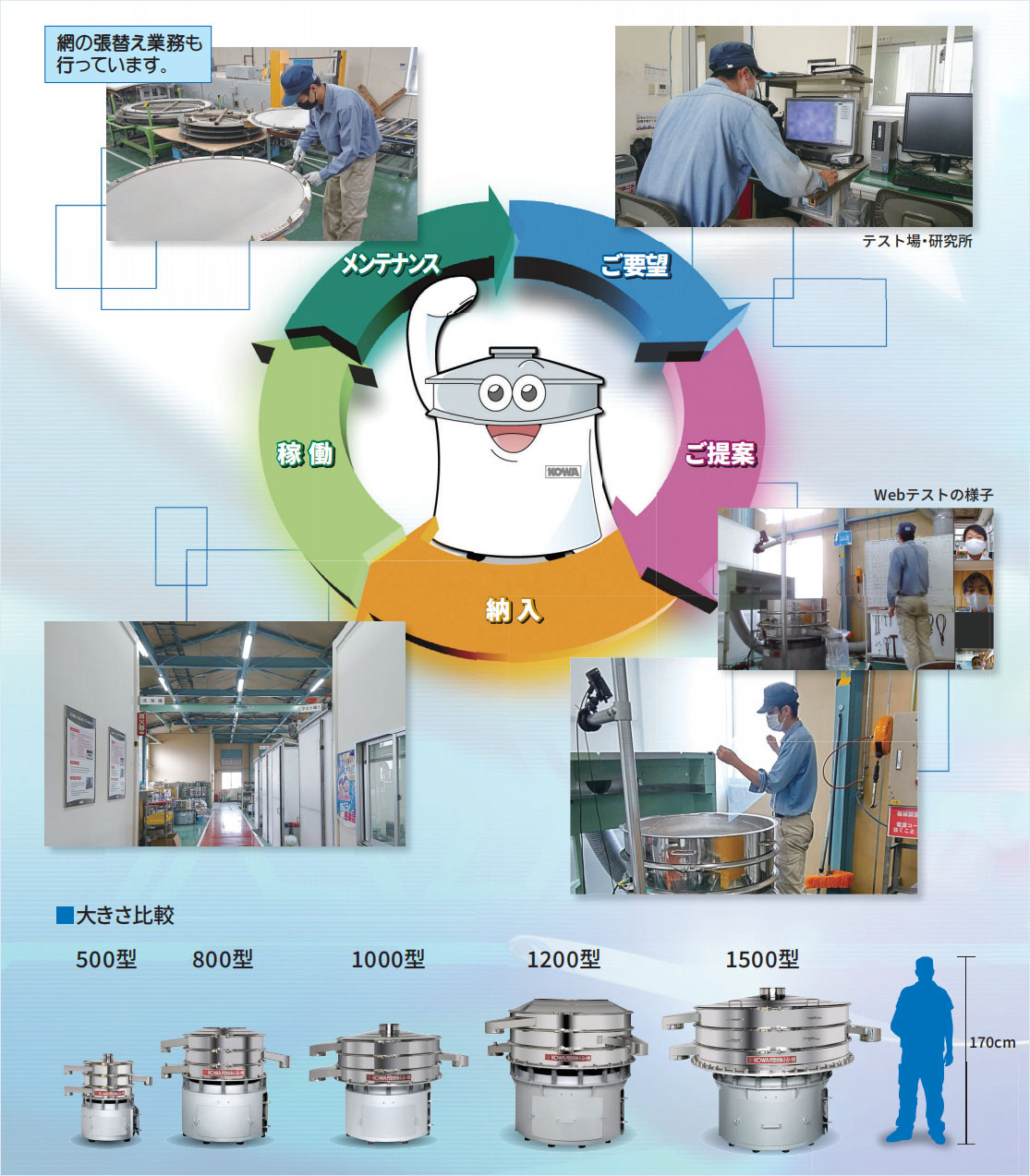 私たちKOWAは三次元振動(dòng)ふるい機(jī)の製造メーカーです。納入からメンテナンスまで、一貫した體制で皆様のご要望にお応え致します。部品交換、メンテナンスなど・わずらわしい作業(yè)もお任せください。