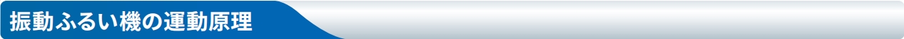 一般的にふるい分けの基本は、網(wǎng)を振動(dòng)させることによって、原料の粒の大きさを選別したり、異物の除去を行います。振動(dòng)ふるい機(jī)の運(yùn)動(dòng)原理は、モーターおよび振動(dòng)體によって水平·垂直·斜めの動(dòng)きを発生させ、網(wǎng)上の原料を効率よくふるい分けするものです。加えて、振動(dòng)體に取りつけたウエイトの位相調(diào)整によって、ふるい面での原料の流れ具合を最適コントロールすることができ、ふるい分けの原料(粒度·比重等)に合わせた効率の良いふるい分けを可能にしています。