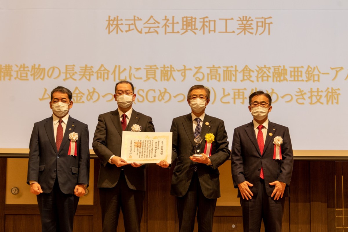 興和(山東)機(jī)械有限公司的日本本社株式會(huì)社興和工業(yè)所于2021年2月18日榮獲2021年度愛(ài)知縣環(huán)境保護(hù)獎(jiǎng)。茲用來(lái)表彰株式會(huì)社興和工業(yè)所不同于一般的鍍鋅工藝,在研發(fā)使用高耐腐蝕性電鍍技術(shù)的同時(shí),通過(guò)對(duì)老化鋼材的再電鍍技術(shù),實(shí)現(xiàn)了構(gòu)造物壽命的延長(zhǎng),對(duì)環(huán)境保護(hù)及構(gòu)建循環(huán)型社會(huì)做出了重大貢獻(xiàn)。