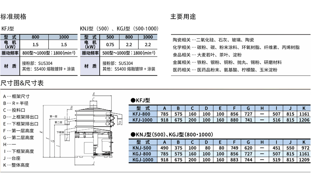 • KF 型、KG 型、KV 型、R 型(各配有 500·800·1000 型)