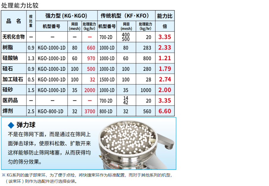 與 KF 系列相比,其處理能力達到 2 ~ 4 倍(本公司對比)的篩分性能獲得盛贊,結構也更加堅固。
